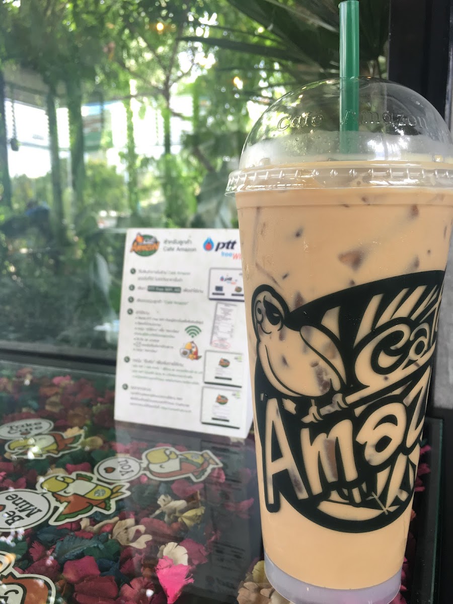 The water fall and Koi pond makes this Amazon special. The Amazon Cafes at PTT stations are perfect for my motorcycle tours. I usually order iced black tea. They have good free WiFi. I can usually find a station every two hours. A welcome break.
